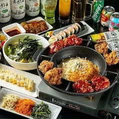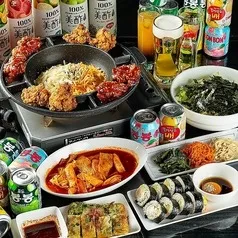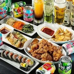 - 【50種類以上のドリンク2時間飲み放題付!】チキン、キンパなど計4品!お手軽プラン¥2,500